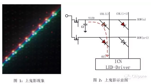 在掃描屏進(jìn)行切換時(shí),由于PMOS管開關(guān)的打開和關(guān)閉以及行線寄生電容Cr上的電荷泄放需要一段時(shí)間,因此在下一行掃VLED與OUT開啟瞬間,上一行掃VLED的未釋放的電荷有了導(dǎo)通路徑。Row(n)打開時(shí),行寄生電容Cr充電到VCC電位。切換到Row(n+1)時(shí),Cr與OUT之間形成電位差,電荷通過燈珠進(jìn)行泄放,產(chǎn)生LED隱亮。DaRLED顯示屏廠家|江蘇迷你光電有限公司