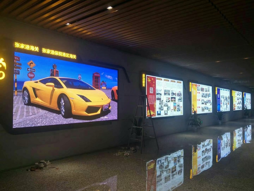 白天效果對(duì)比:全彩led顯示屏VS液晶屏圖片(左側(cè)led顯示屏右側(cè)120寸液晶顯示屏)