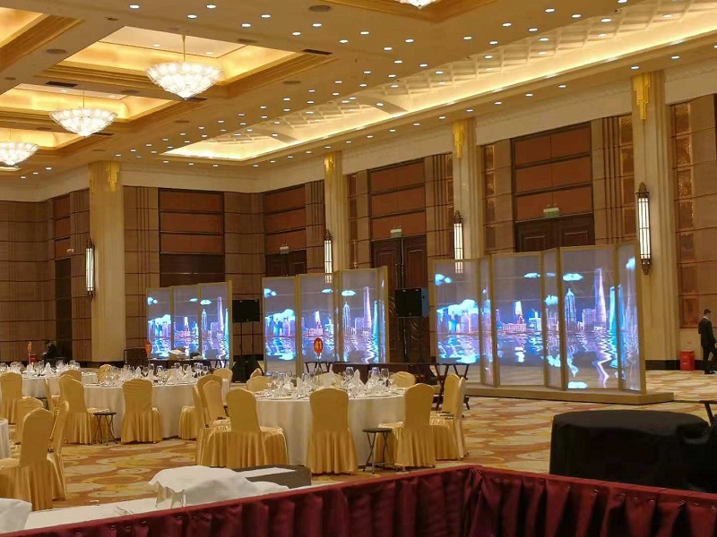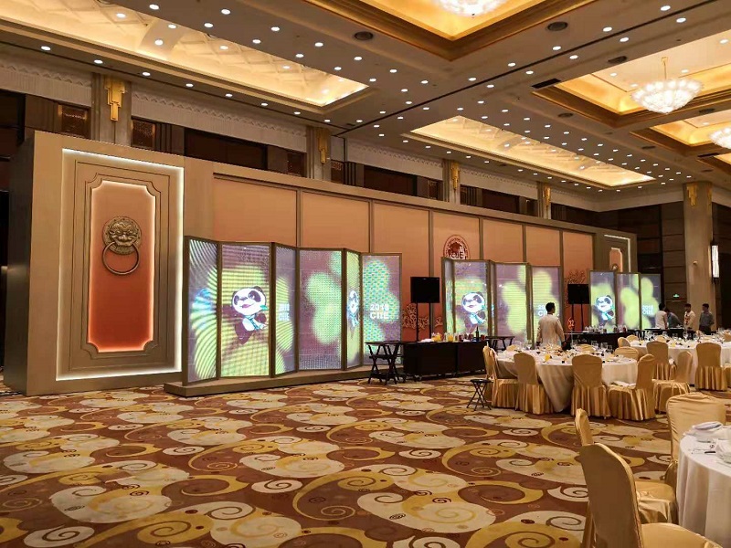 上海led有限公司為此次國(guó)際進(jìn)出口博覽會(huì)專(zhuān)業(yè)定制了此款LED透明折疊屏風(fēng),用以滿(mǎn)足國(guó)際高規(guī)格的接待要求,彰顯我國(guó)在透明屏領(lǐng)域的創(chuàng)新實(shí)力。該LED透明折疊屏風(fēng)畫(huà)面精美靚麗,富有科技感,屏體簡(jiǎn)潔典雅大方,成為了宴會(huì)廳一道亮麗的風(fēng)景線(xiàn),營(yíng)造了整體的歡愉氣氛和獨(dú)特的視覺(jué)效果。